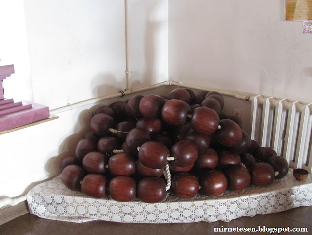 Изюминкой молельного зала являются также огромные бубинговые чётки. Их преподнёс 10 лет назад Хаяши Хироши.